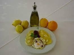Se pela el limón y las naranjas cortándolas en trocitos pequeños y se ponen sobre el fondo de una fuente. A continuación se "desbaratan" los huevos mezclándolos con las naranjas y el limón.
