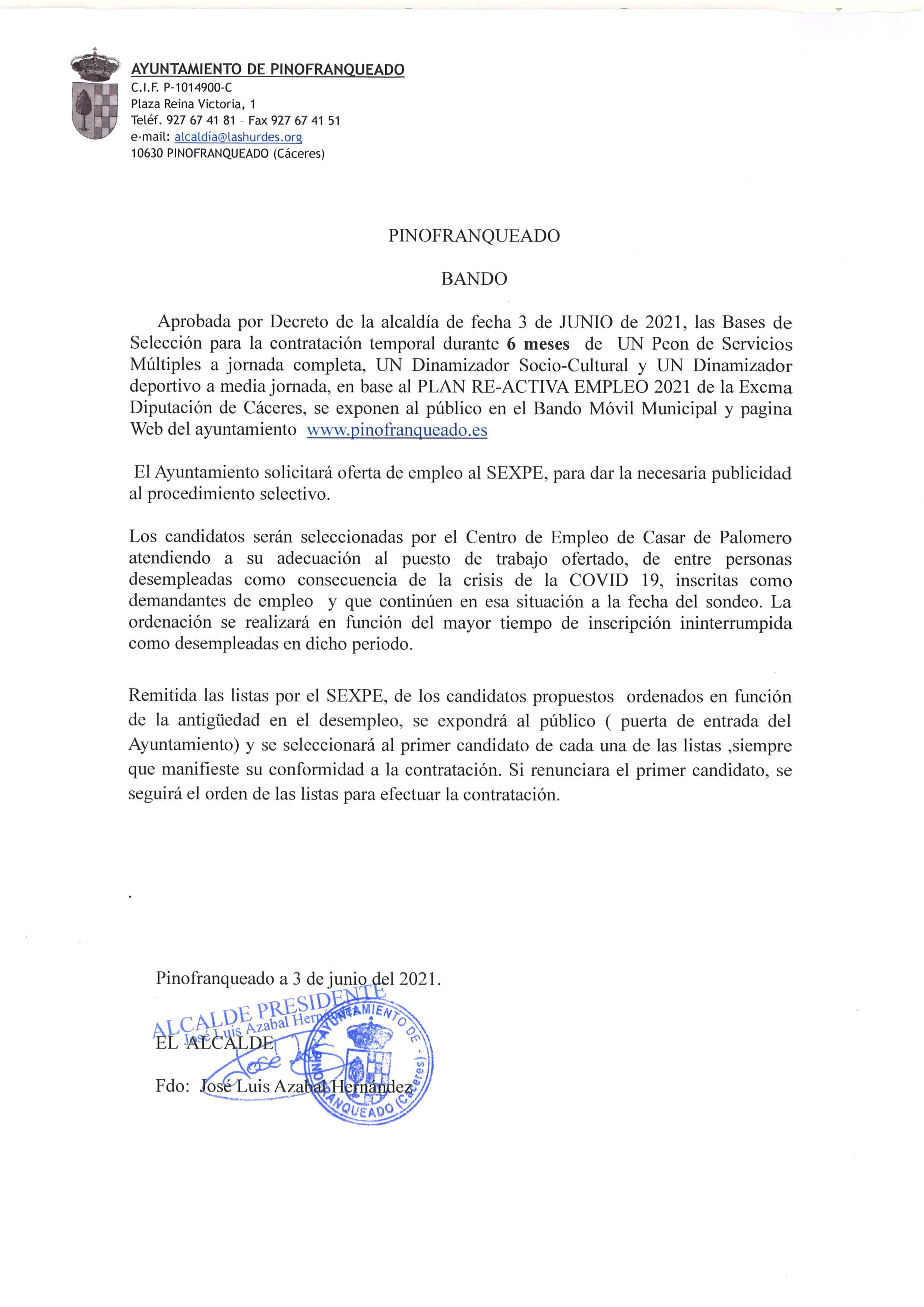 BASES CONTRATACIÓN PLAN RE-ACTIVA EMPLEO 2021